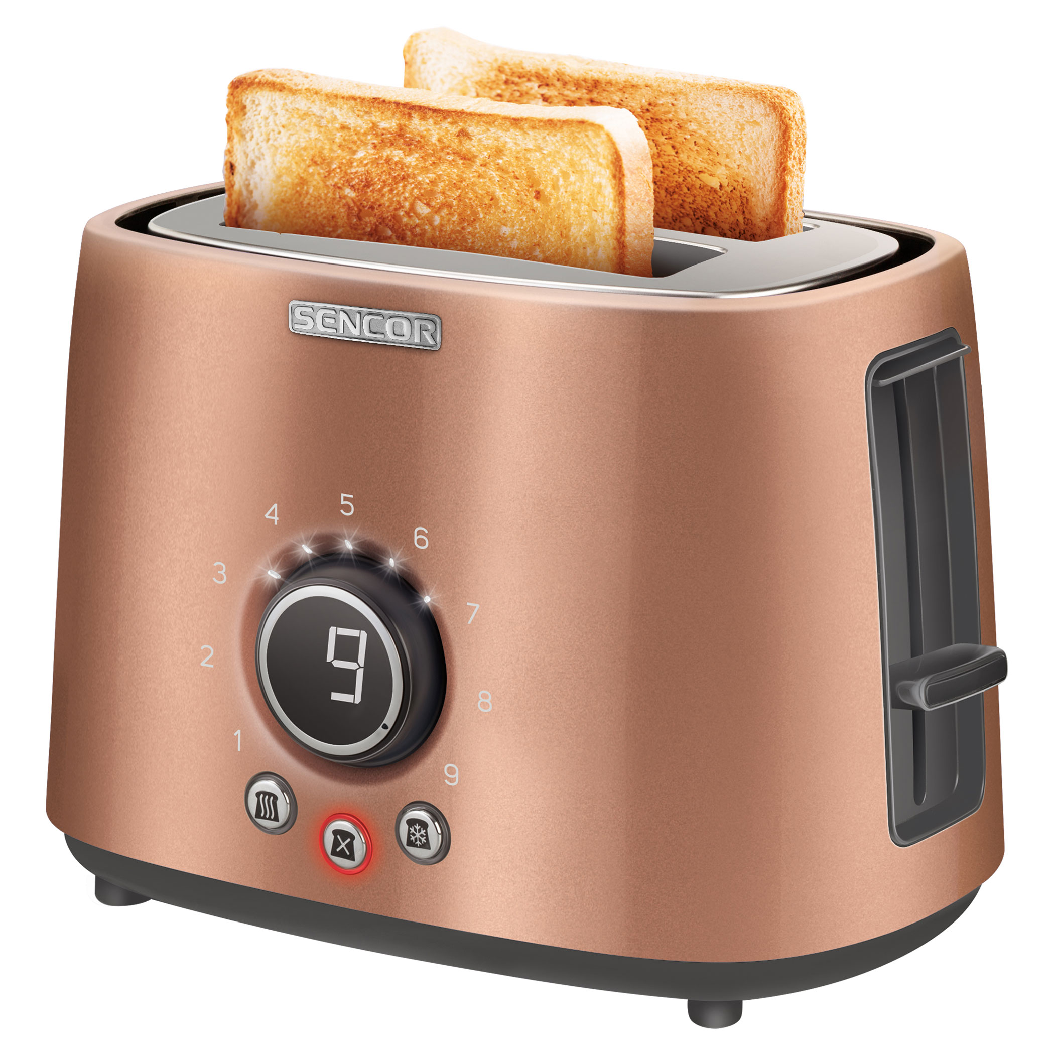 Automaatse tsentreerimise funktsioon nii paksude kui ka õhukeste viilude ühtlaseks röstimiseks